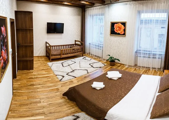 "The Cultural Capital" Vip ferielejlighed ligger i Lviv, 150 m fra Lviv Armenian Cathedral, og har fri Wi-Fi i hele ejendommen. Boligen består af 1 badeværelser og 2 værelser med plads til op til 6 personer. Der er gratis privat parkering, gratis parkering og en natklub som er tilgængelige på stedet.